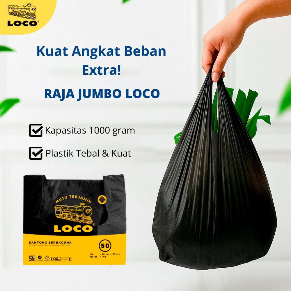 Dengan kapasitas besar dan ketebalan optimal, LOCO JUMBO Hitam Ukuran 50 menawarkan solusi kuat, praktis, dan efisien untuk kebutuhan usaha maupun penggunaan pribadi.