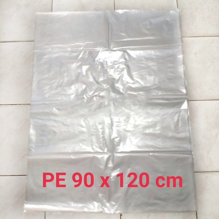 Kantong plastik PE bening besar tebal. Tersedia ukuran 75x130 dan 90x120 cm. Kuat, lentur, dan dijual per kg.