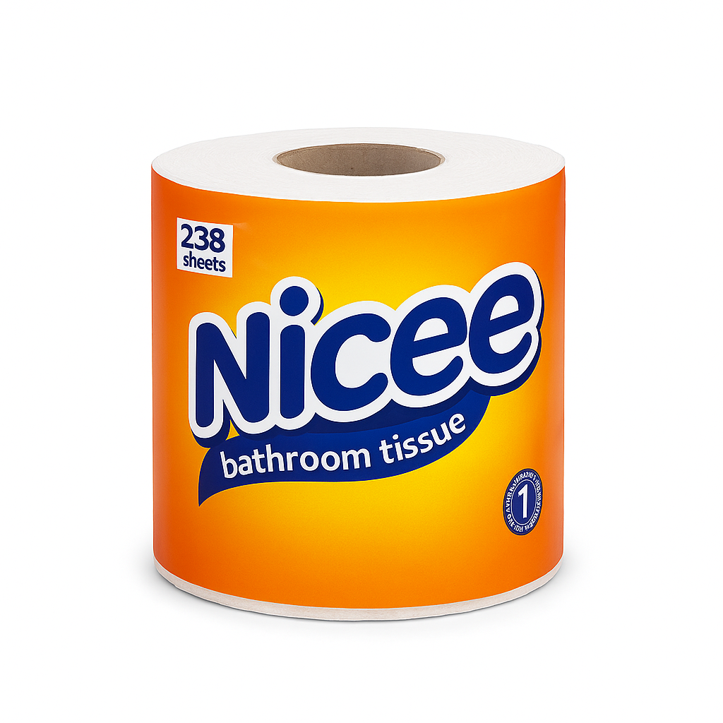 Tissue Nice Roll 238 Sheets 2 Ply lembut, kuat, dan cepat menyerap. Praktis untuk menjaga kebersihan keluarga setiap hari di kamar mandi dan dapur.